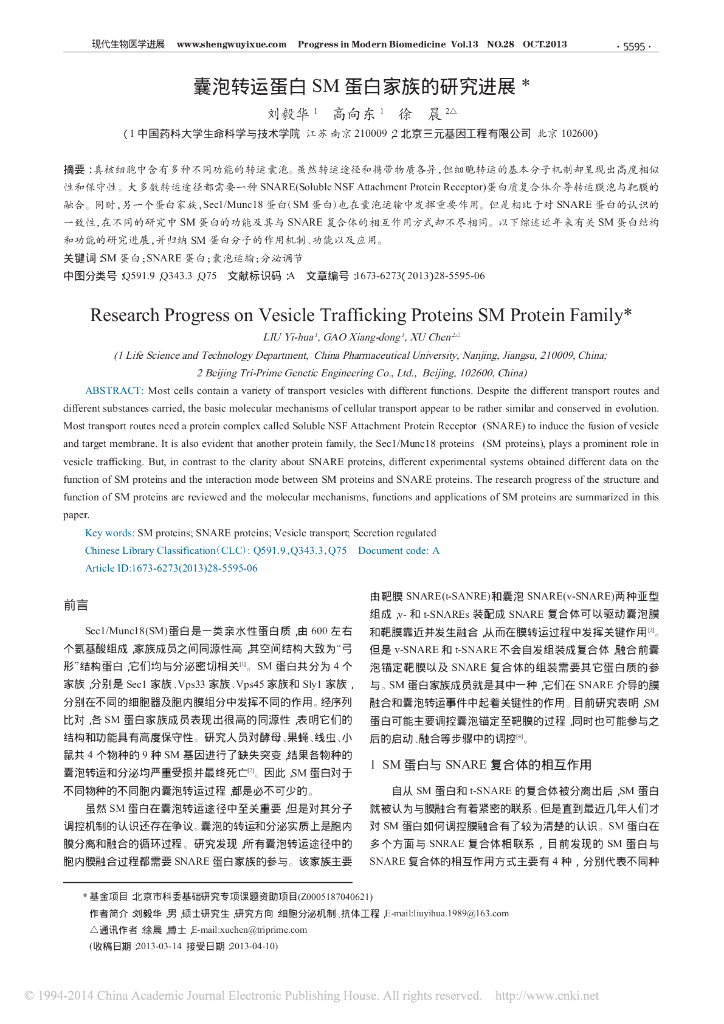 《药学的生物化学基础》囊泡转运蛋白SM 蛋白家族的研究进展.pdf