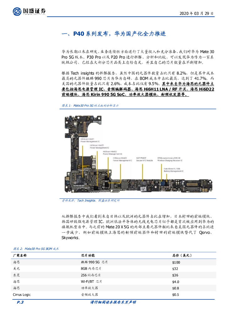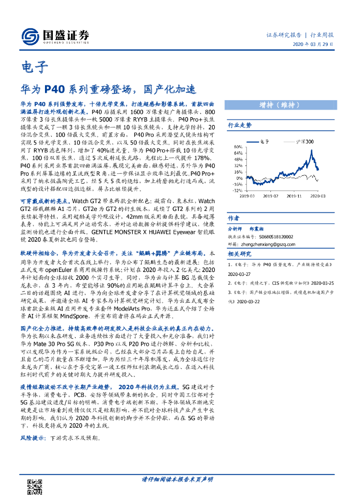 国盛证券:电子行业周报:华为P40系列重磅登场,国产化加速.pdf