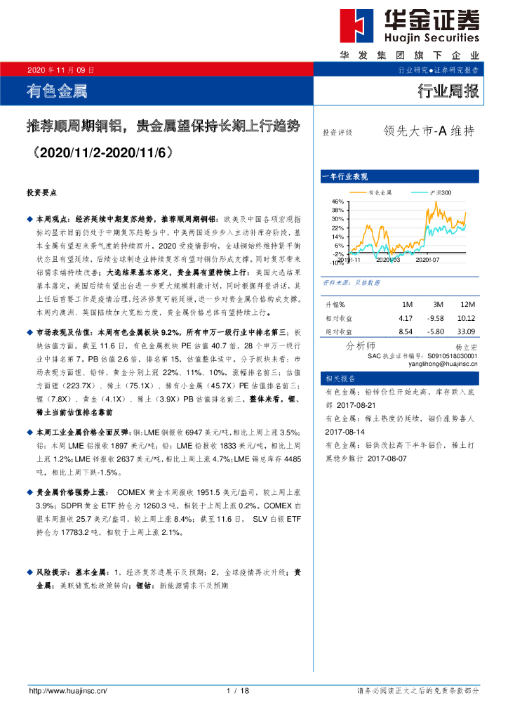 华金证券:有色金属行业周报:推荐顺周期铜铝,贵金属望保持长期上行趋势.pdf
