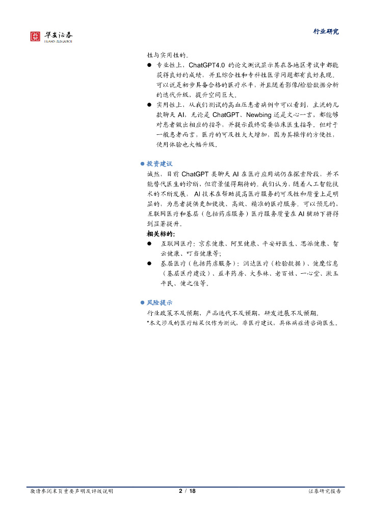 华安证券:医疗AI专题二:专业性与实用性兼备,ChatGPT类聊天AI在医疗端的使用报告.pdf