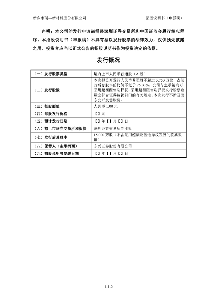 新乡市瑞丰新材料股份有限公司深交所创业板IPO上市招股说明书.pdf