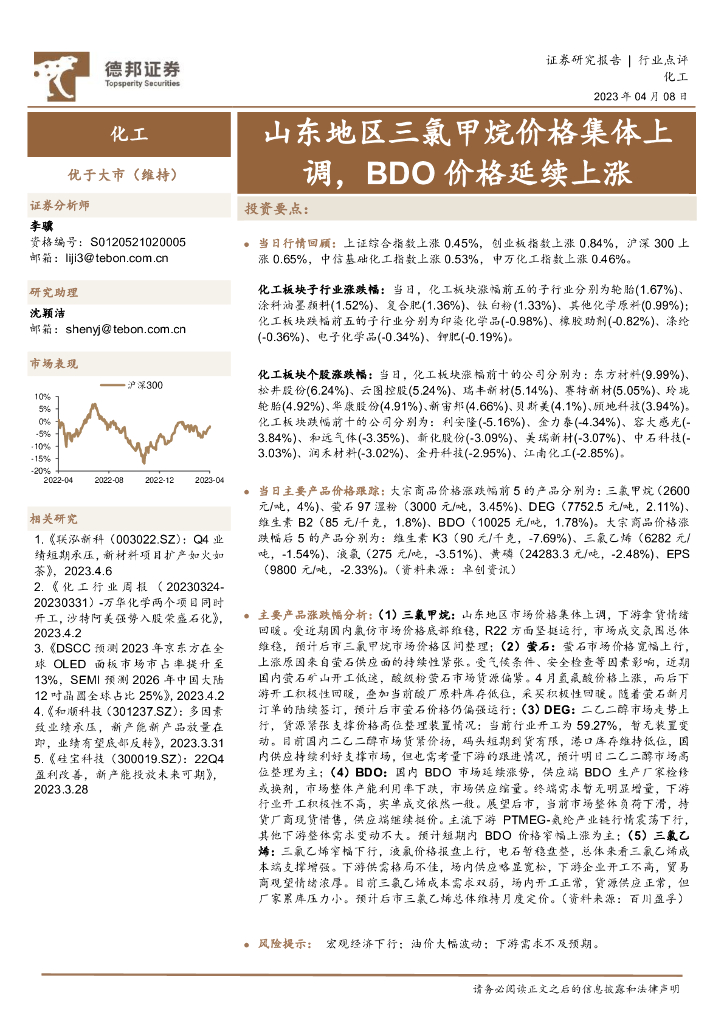 德邦证券:化工:山东地区三氯甲烷价格集体上调,BDO价格延续上涨.pdf