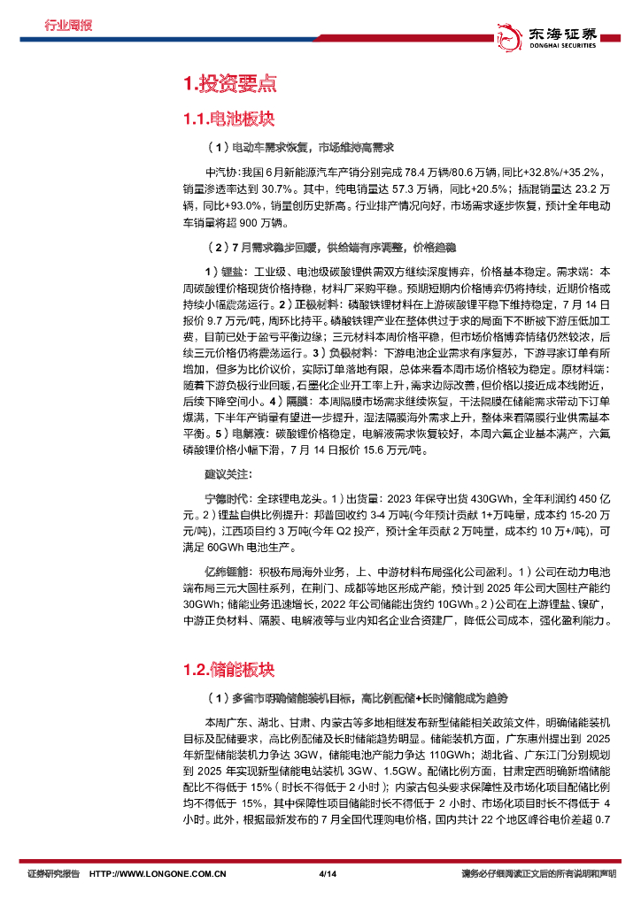 东海证券:电池及储能行业周报:多省市明确储能装机目标,高比例配储+长时储能成为趋势.pdf