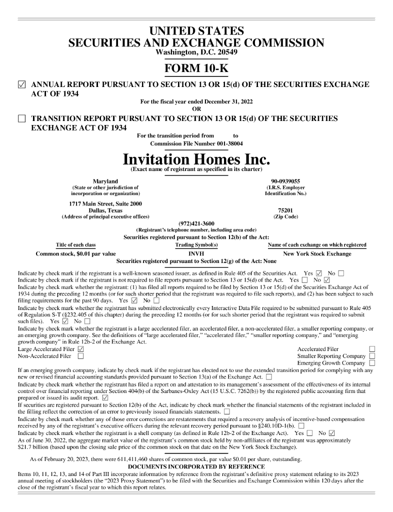 Invitation Homes Inc.(INVH)2022财年年度报告(英文版).pdf