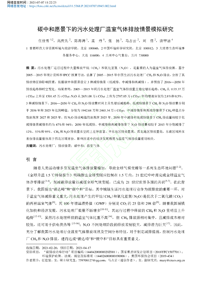碳中和愿景下的污水处理厂温室气体排放情景模拟研究.pdf