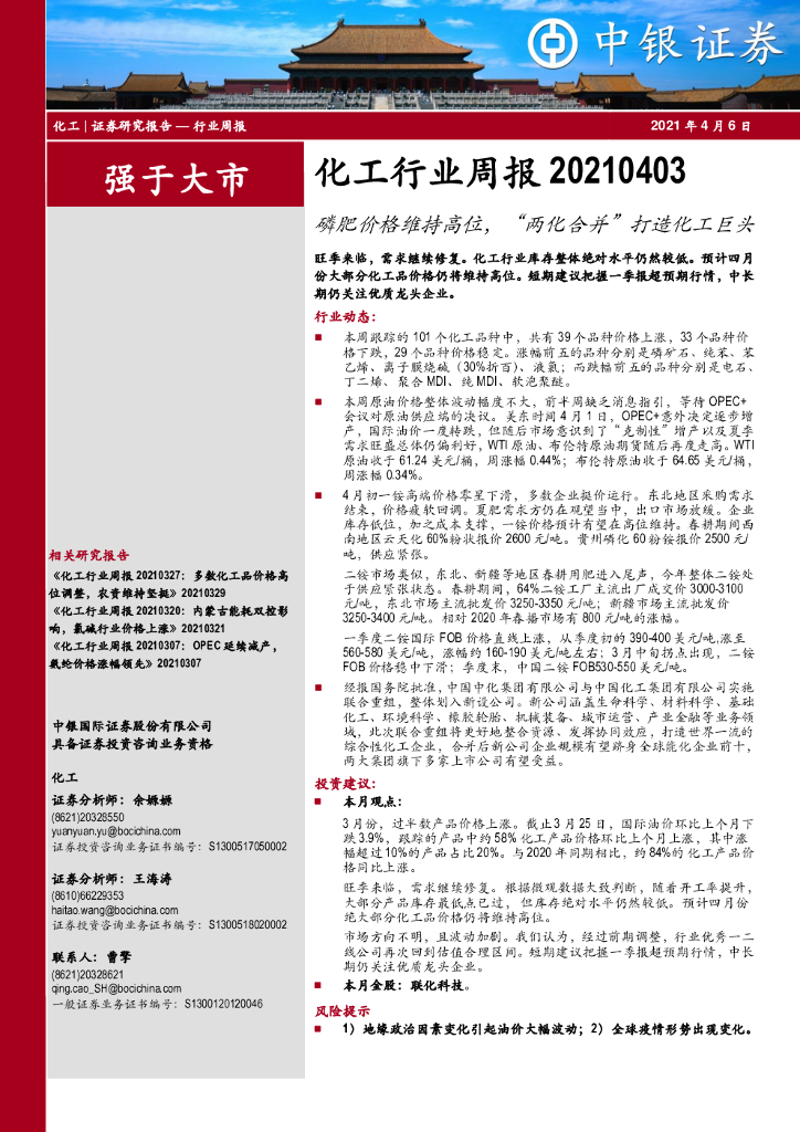 中银证券:化工行业周报:磷肥价格维持高位,“两化合并”打造化工巨头.pdf