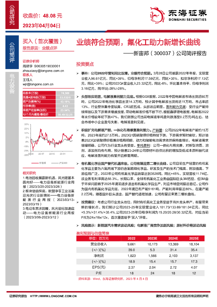 东海证券:新宙邦(300037)-公司简评报告:业绩符合预期,氟化工助力新增长曲线.pdf