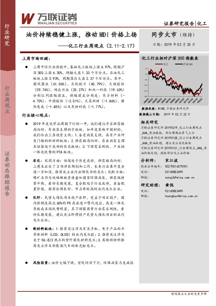万联证券:化工行业周观点:油价持续稳健上涨,推动MDI价格上扬.pdf