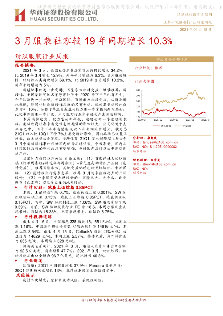 华西证券:纺织服装行业周报:3月服装社零较19年同期增长10.3%.pdf