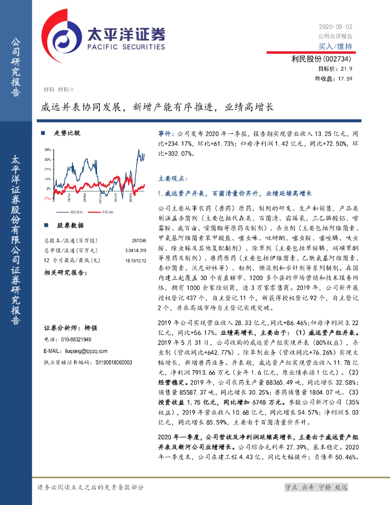太平洋证券:利民股份(002734)-威远并表协同发展,新增产能有序推进,业绩高增长.pdf