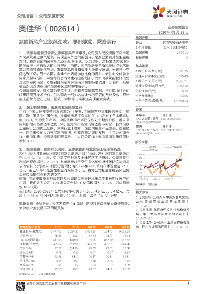 天风证券:奥佳华(002614)-家庭新风产业东风劲吹,厚积薄发,乘势前行.pdf
