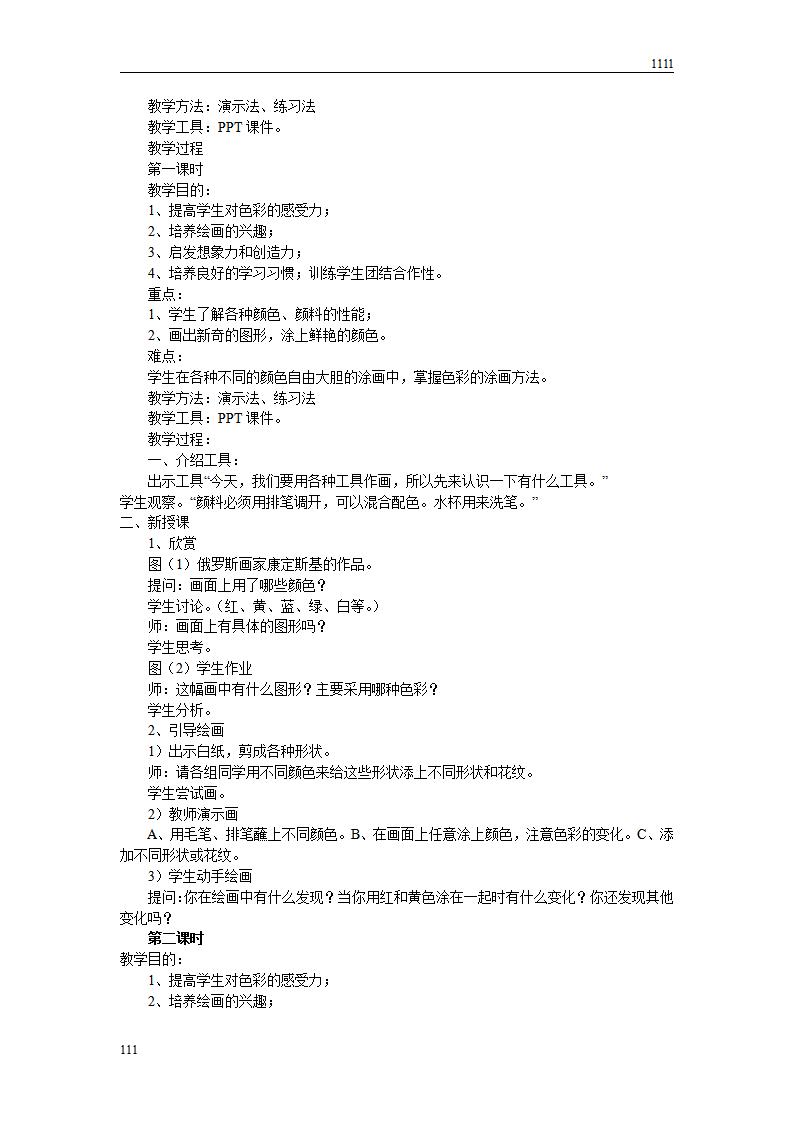 江西版一年级上册美术全册教案.doc