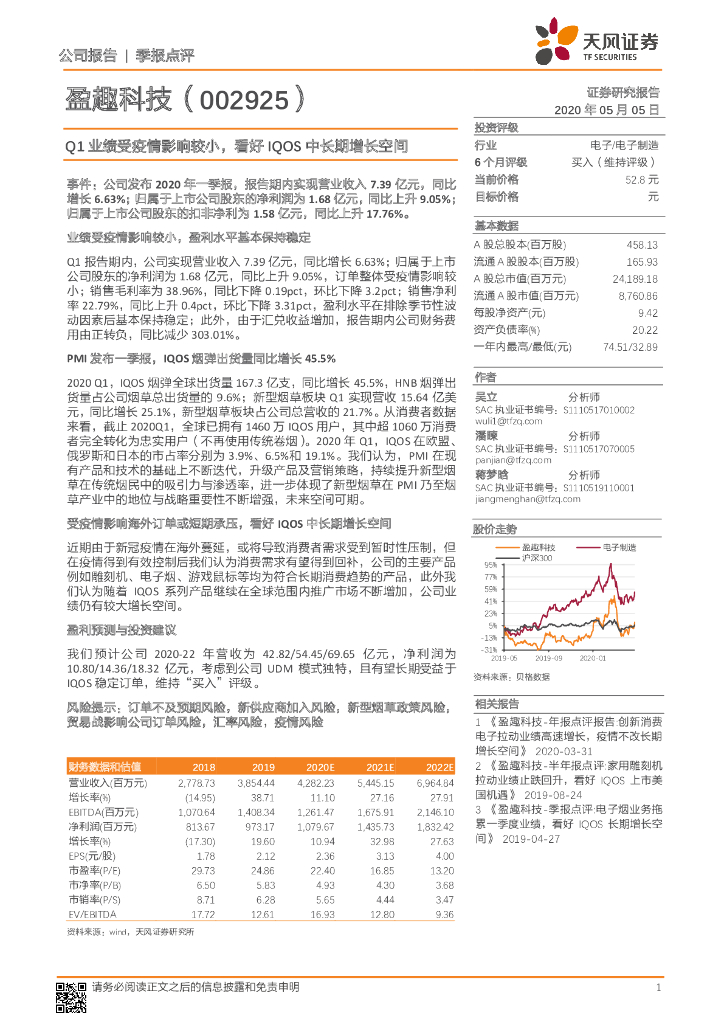 天风证券:盈趣科技(002925)-Q1业绩受疫情影响较小,看好IQOS中长期增长空间.pdf