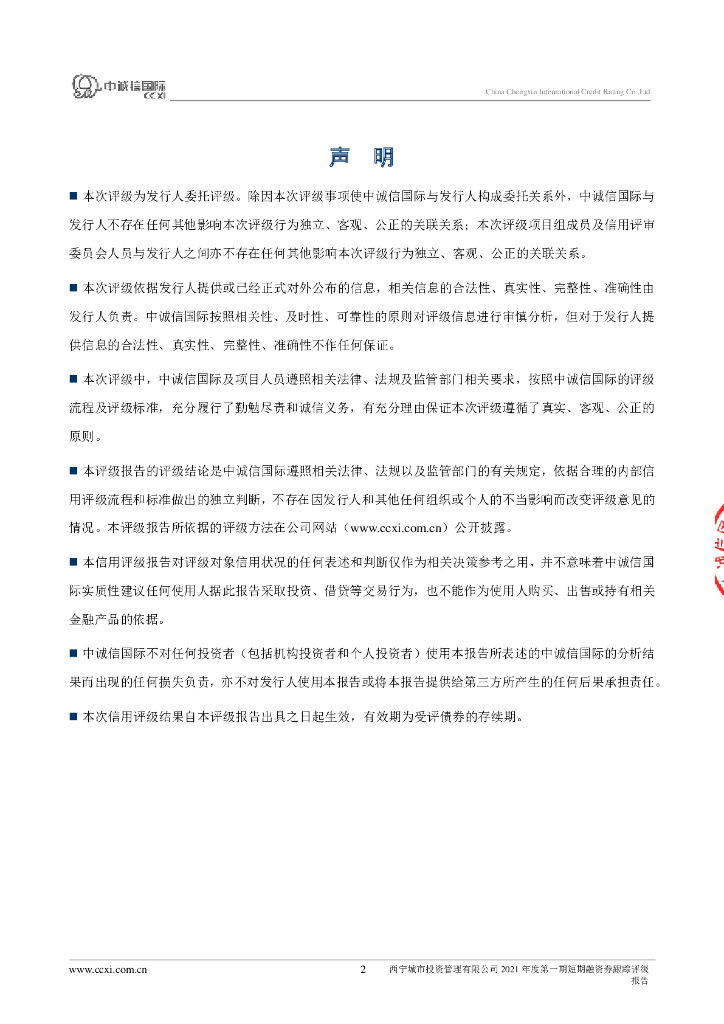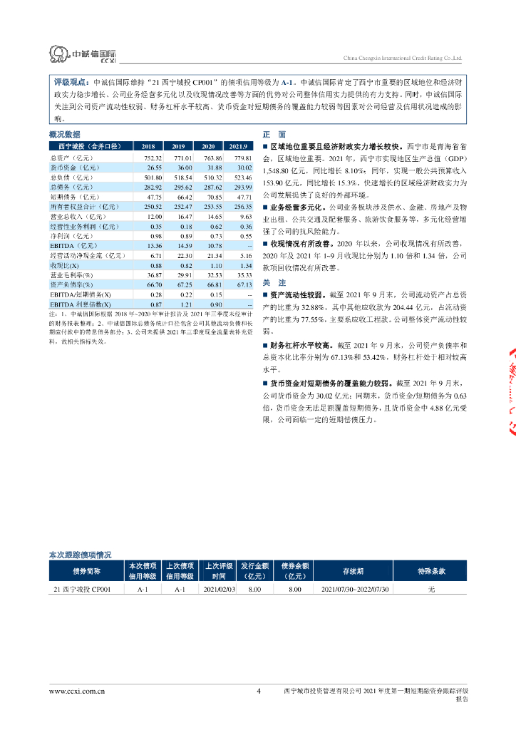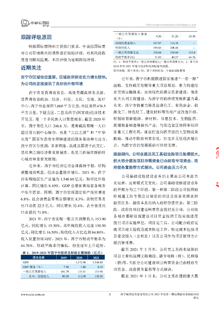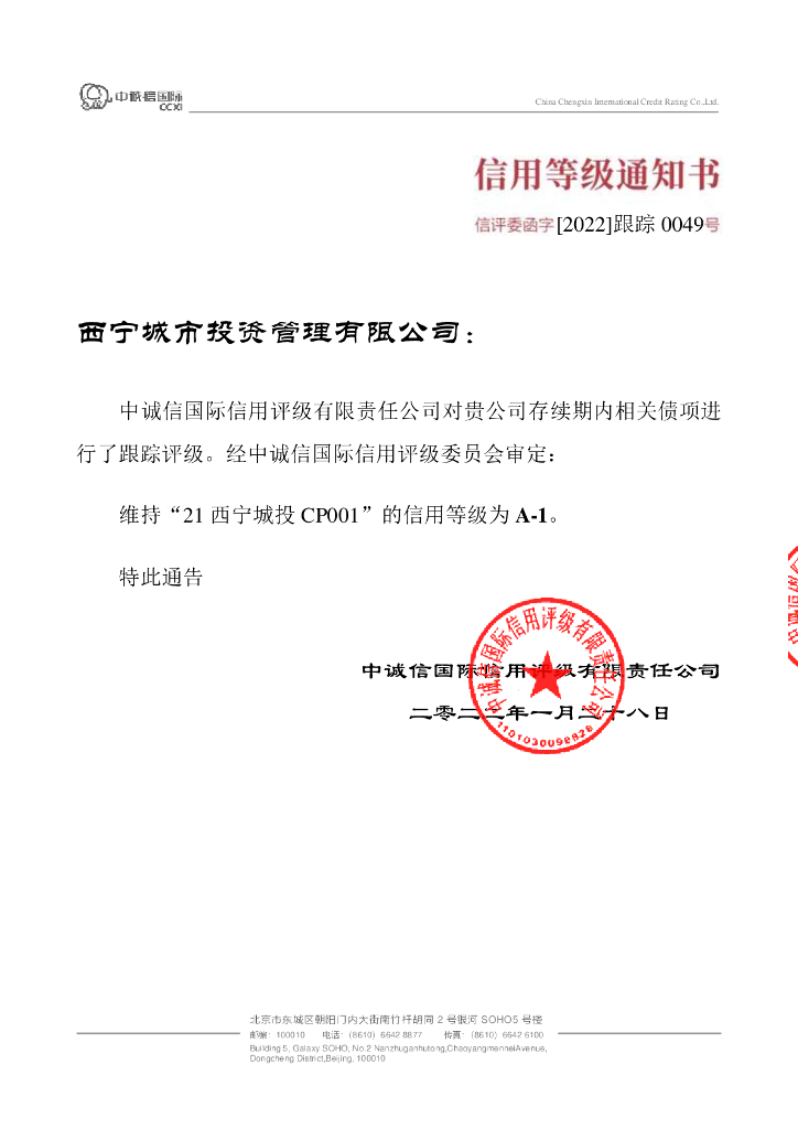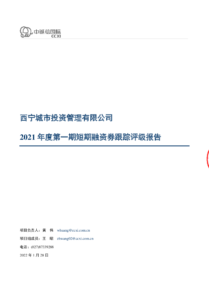 中诚信:西宁城市投资管理有限公司2021年度第一期短期融资券跟踪评级报告.pdf