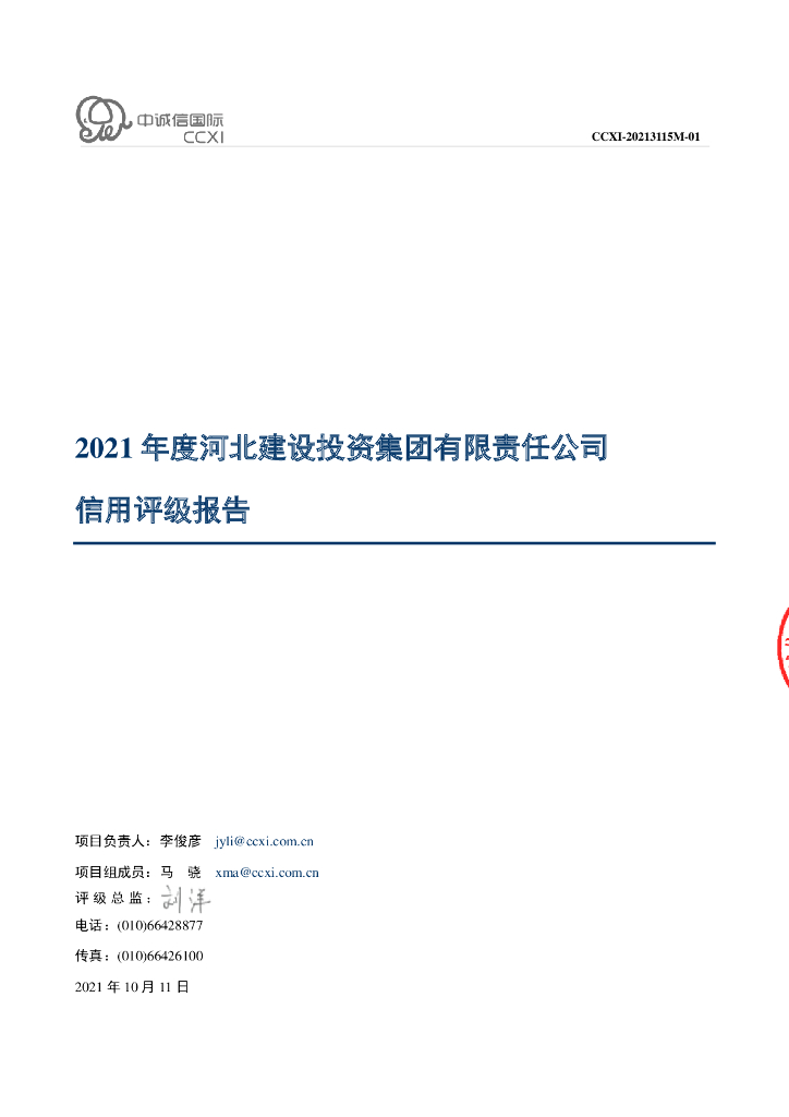 中诚信:河北建设投资集团有限责任公司主体信用评级报告及跟踪评级安排.pdf