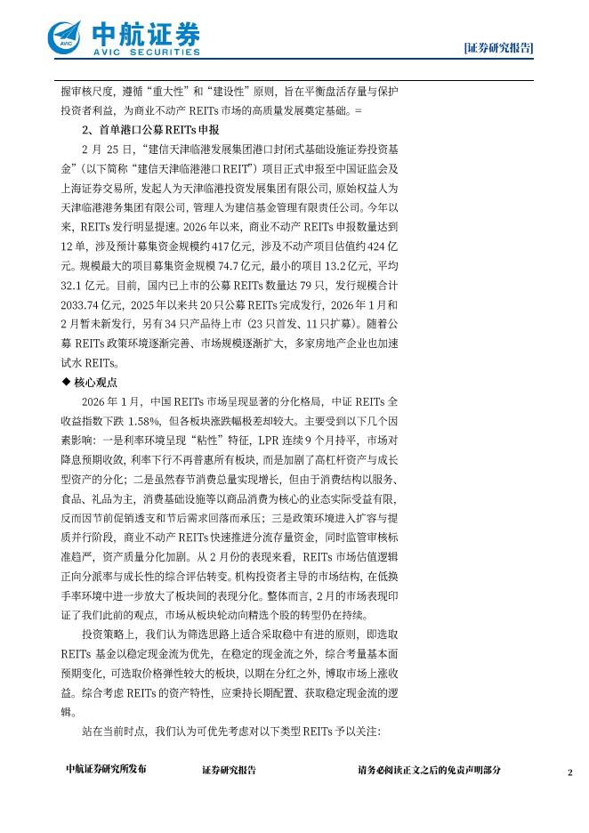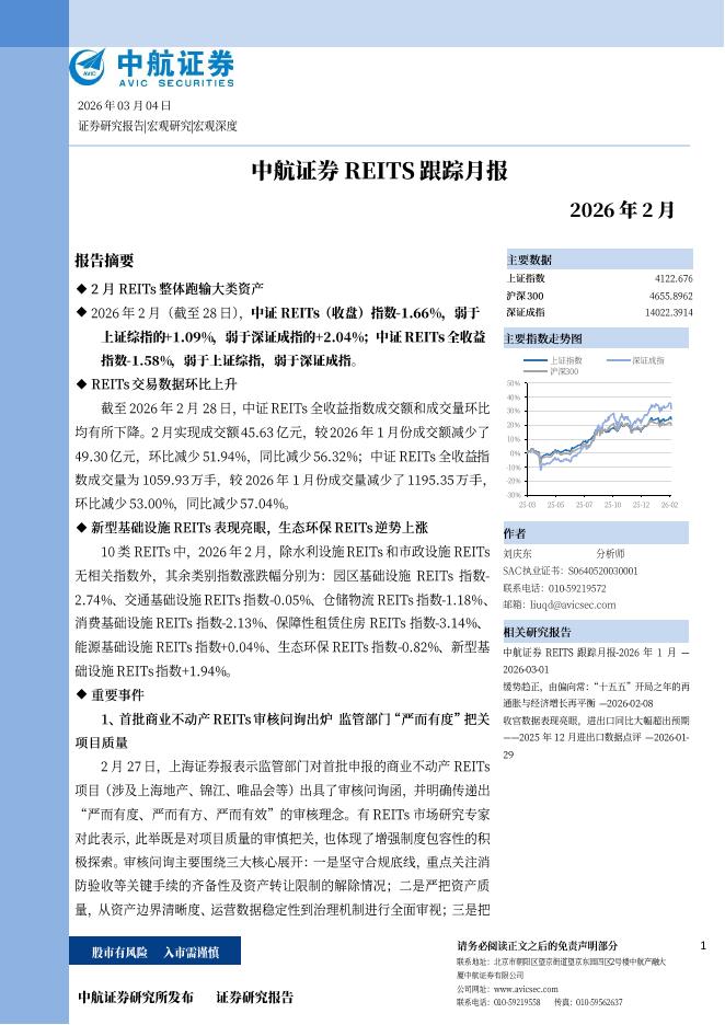 中航证券:REITS跟踪月报2026年2月-260318.pdf