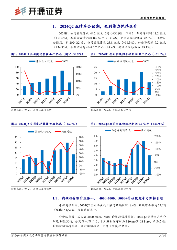 开源证券:石头科技(688169)-公司信息更新报告:2024Q2业绩超预告中枢,盈利能力保持提升.pdf