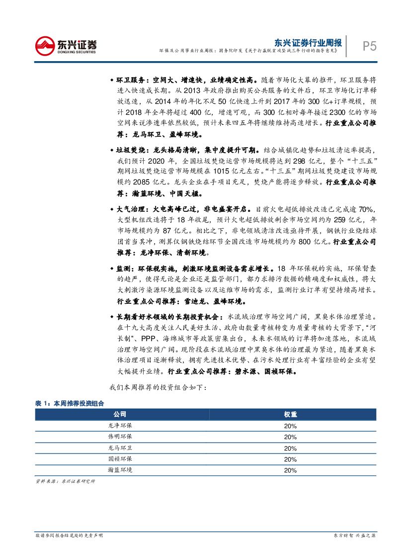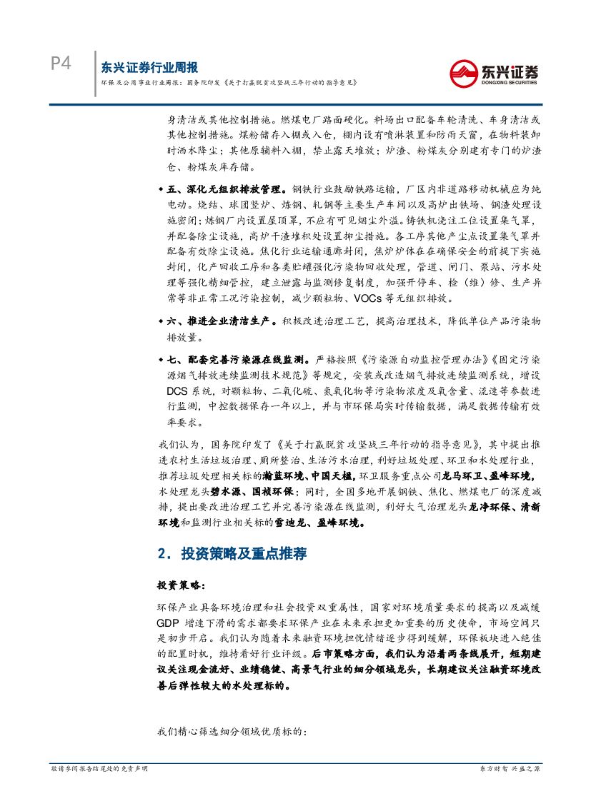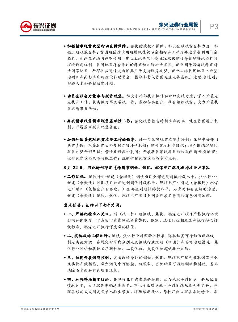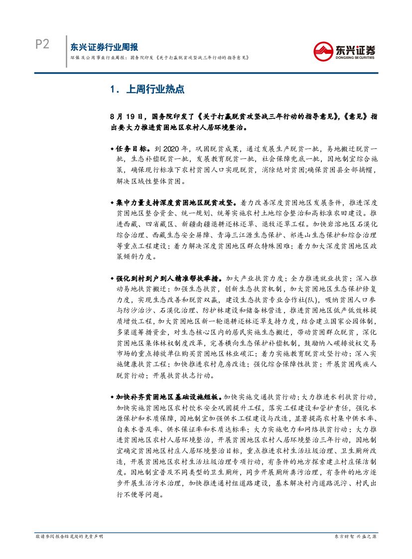 东兴证券:环保及公用事业行业周报:国务院印发《关于打赢脱贫攻坚战三年行动的指导意见》.pdf