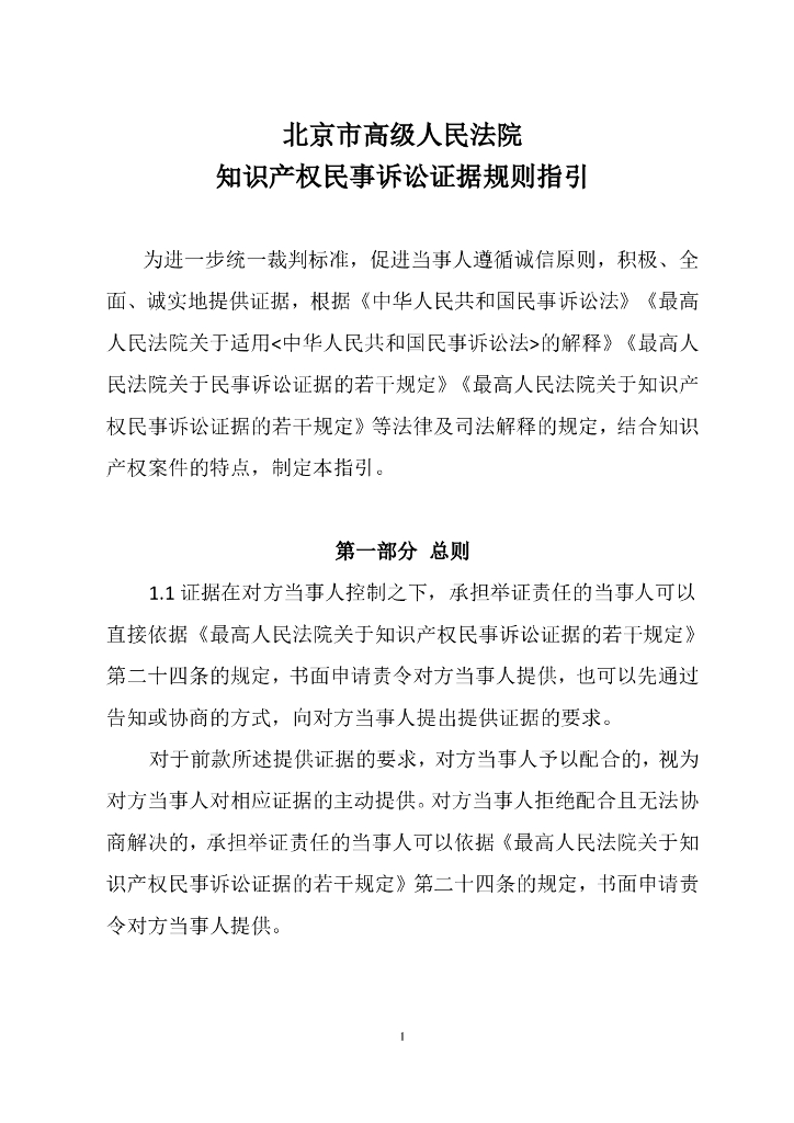 北京市高级人民法院知识产权民事诉讼证据规则指引.pdf
