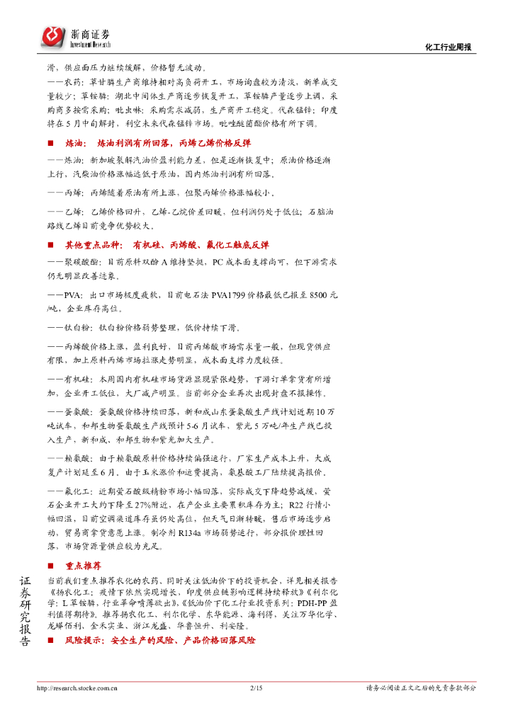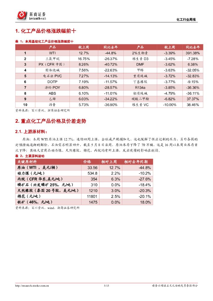 浙商证券:化工行业周报:涤纶库存压力缓解,氨纶3万吨新生产线达产.pdf