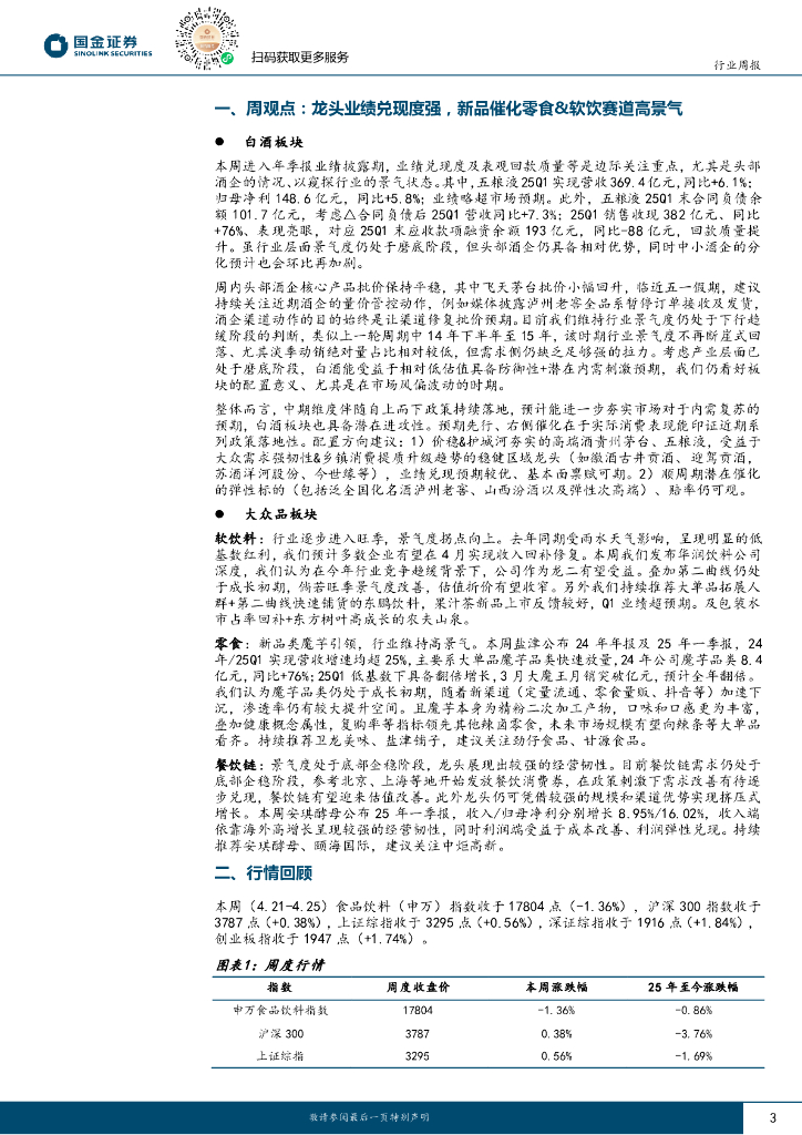 国金证券:食品饮料行业周报:龙头业绩兑现度强,新品催化零食&软饮赛道高景气.pdf