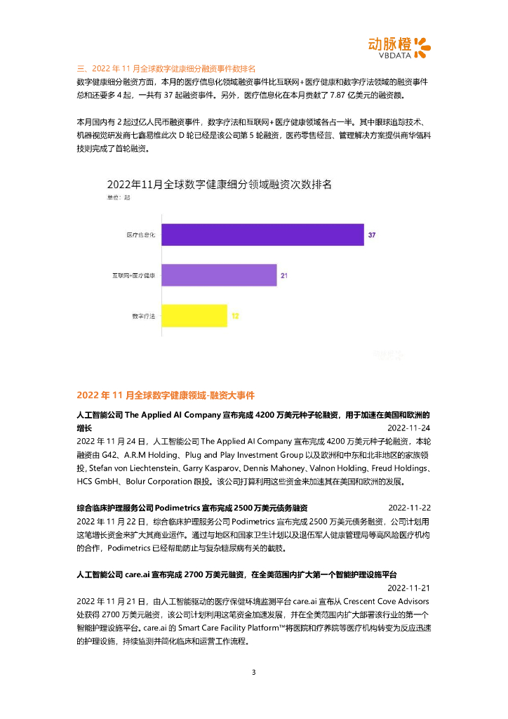 动脉橙:2022年11月全球数字健康投融资月报.pdf
