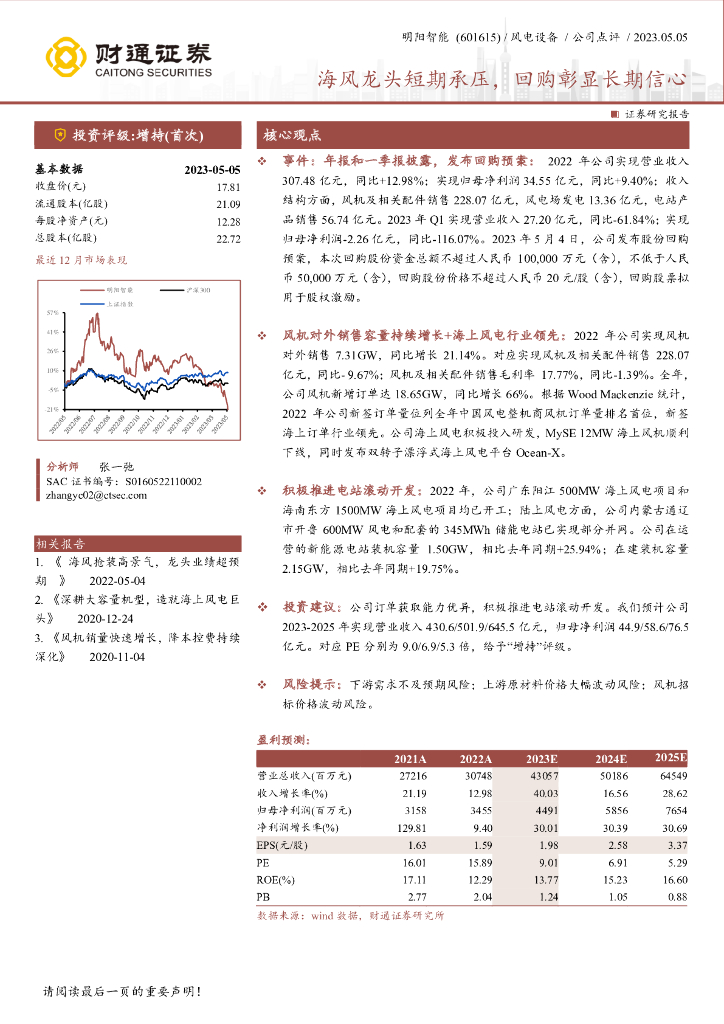 财通证券:明阳智能(601615)-海风龙头短期承压,回购彰显长期信心.pdf