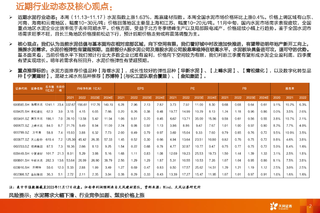 天风证券:水泥行业研究周报:供给收缩推动价格上涨,后期或震荡调整为主.pdf