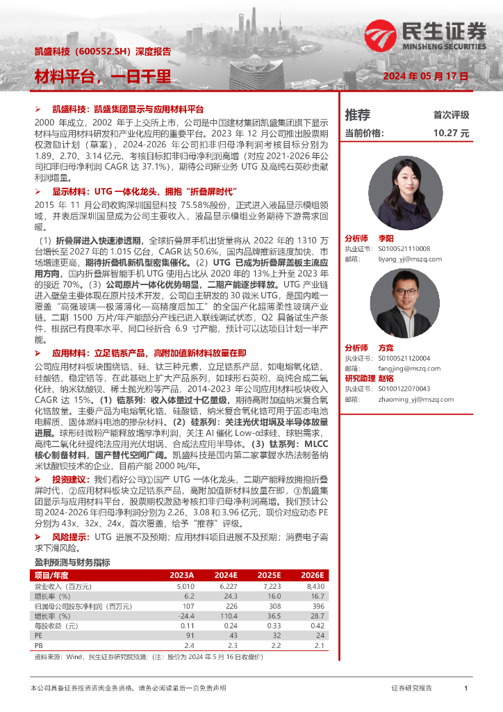 民生证券:凯盛科技(600552)-深度报告:材料平台,一日千里.pdf