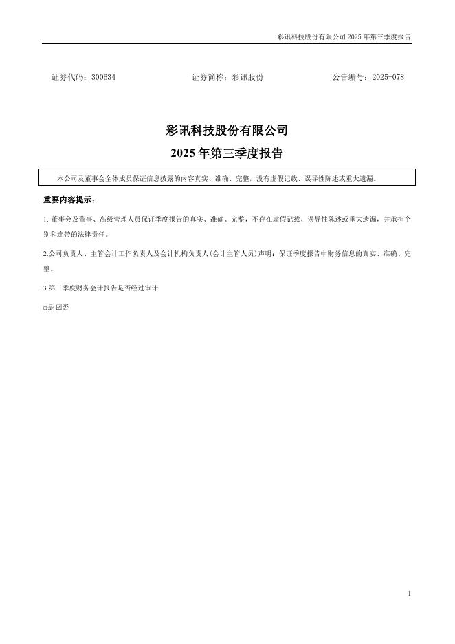 300634-彩讯股份:2025年三季度报告.pdf