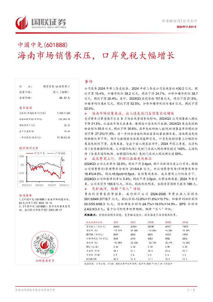 国联证券:中国中免(601888)-海南市场销售承压,口岸免税大幅增长.pdf