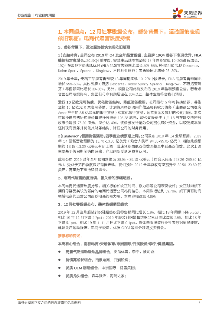 天风证券:纺织服装行业研究周报:12月社零数据公布,暖冬背景下,运动服饰表现依旧靓丽;电商代运营热度持续.pdf