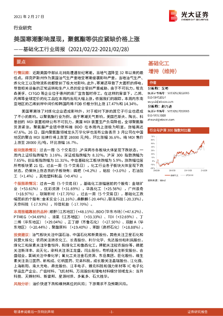光大证券:基础化工行业周报:美国寒潮影响显现,聚氨酯等供应紧缺价格上涨.pdf