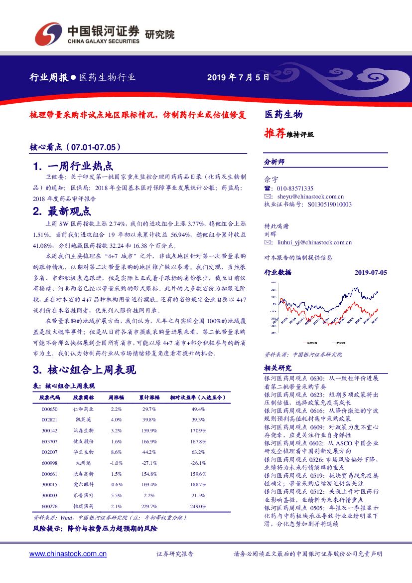 中国银河:医药生物行业周报:梳理带量采购非试点地区跟标情况,仿制药行业或估值修复.pdf