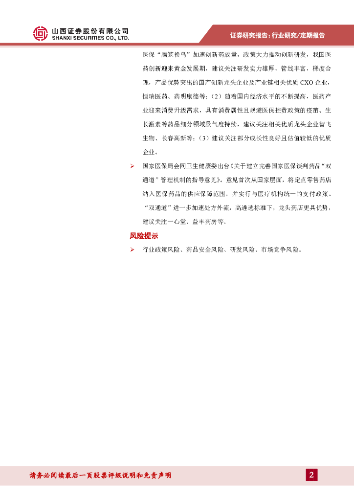 山西证券:医药行业周报:国谈药品“双通道”管理,龙头药店有望受益.pdf