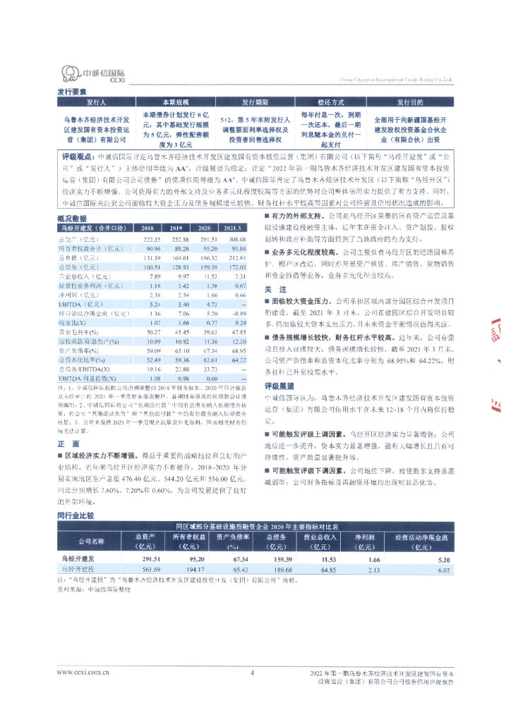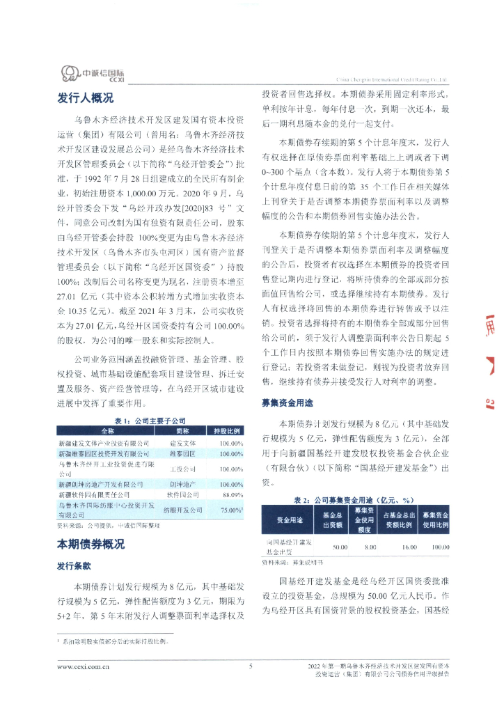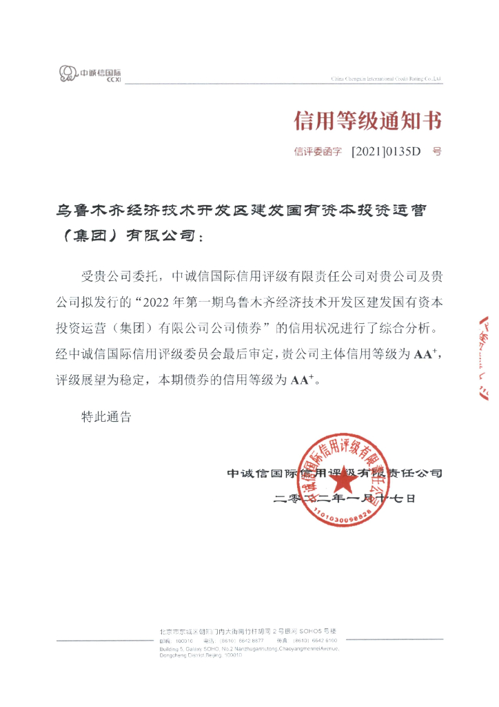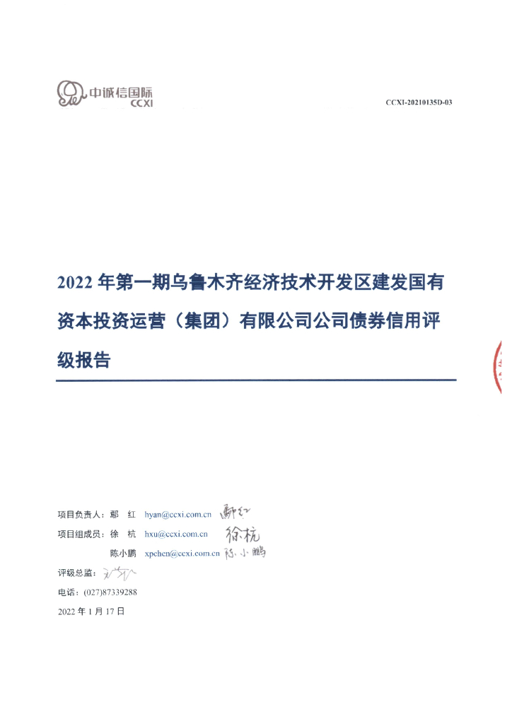 中诚信:2022年第一期乌鲁木齐经济技术开发区建发国有资本投资运营(集团)有限公司公司债券信用评级报告.pdf