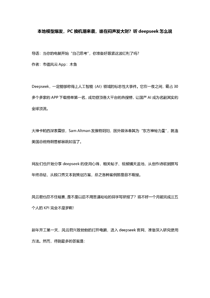 市值风云:本地模型爆发,PC换机潮来袭,谁在闷声发大财?听deepseek怎么说.pdf