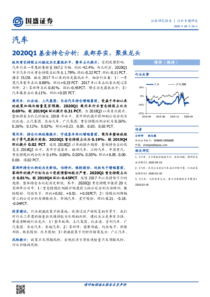 国盛证券:汽车行业专题研究:2020Q1基金持仓分析:底部夯实,聚焦龙头.pdf