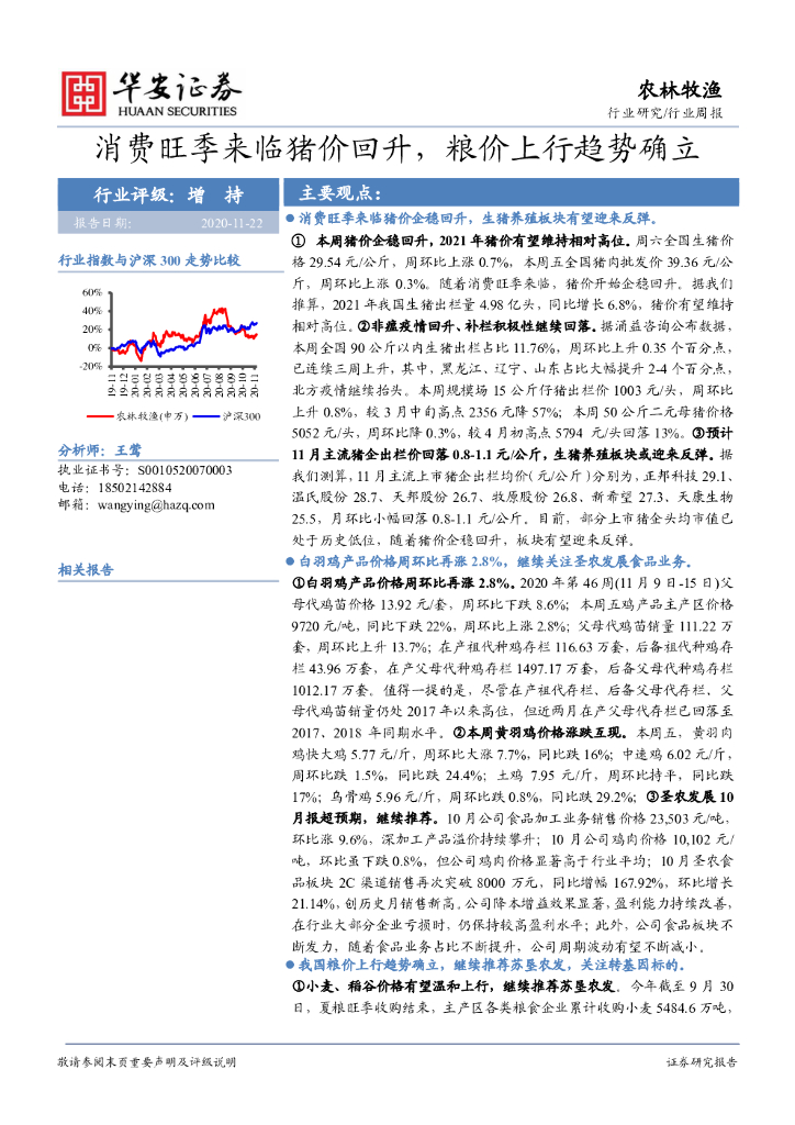 华安证券:农林牧渔行业周报:消费旺季来临猪价回升,粮价上行趋势确立.pdf