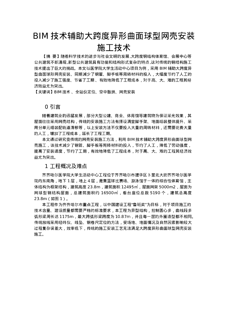 大跨度异形曲面球型网壳安装施工技术.doc