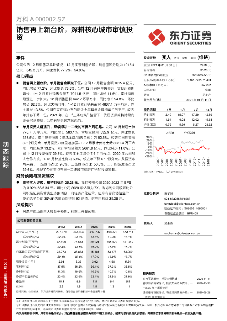 东方证券:万科A(000002)-销售再上新台阶,深耕核心城市审慎投资.pdf
