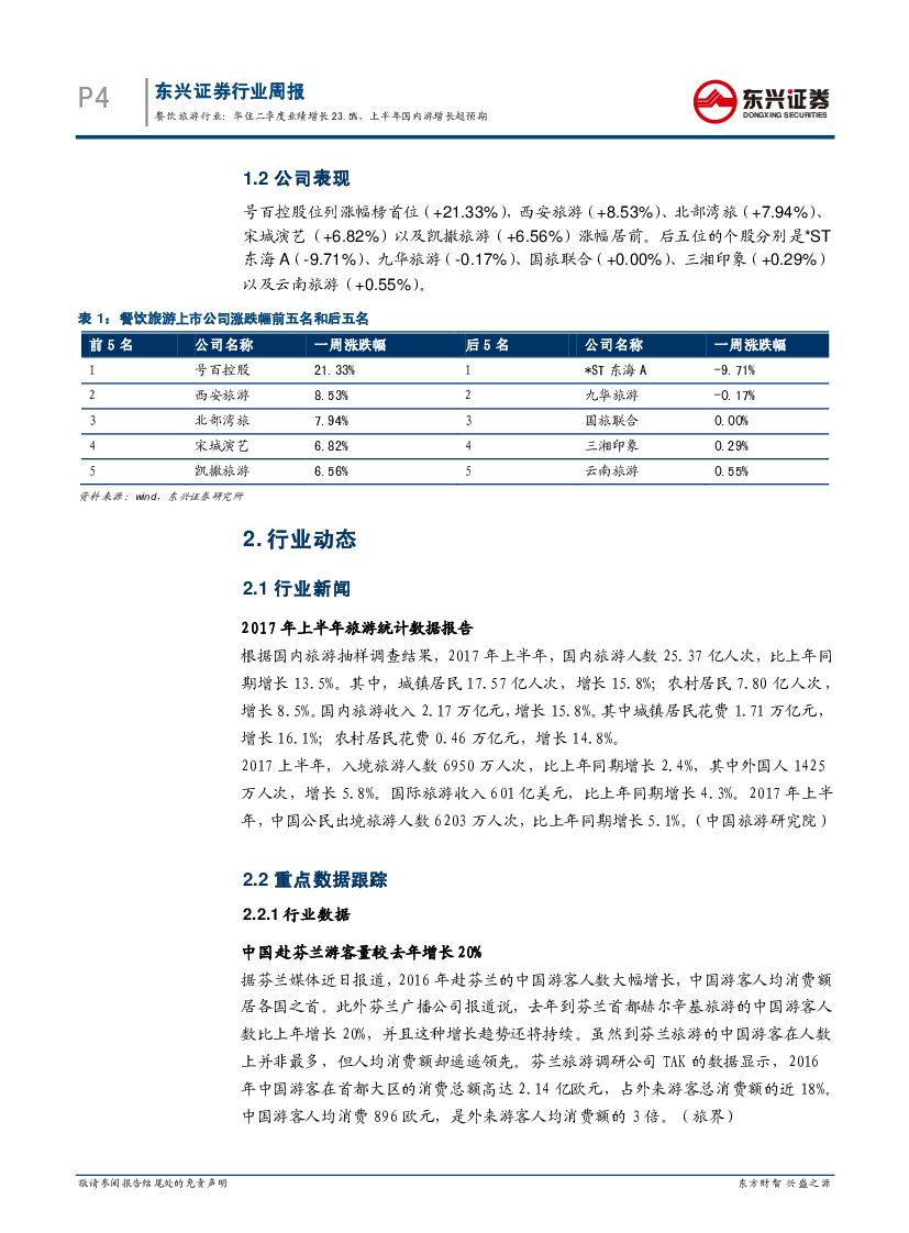 东兴证券:餐饮旅游行业2017年08月第3周周报:华住二季度业绩增长23.5%,上半年国内游增长超预期.pdf