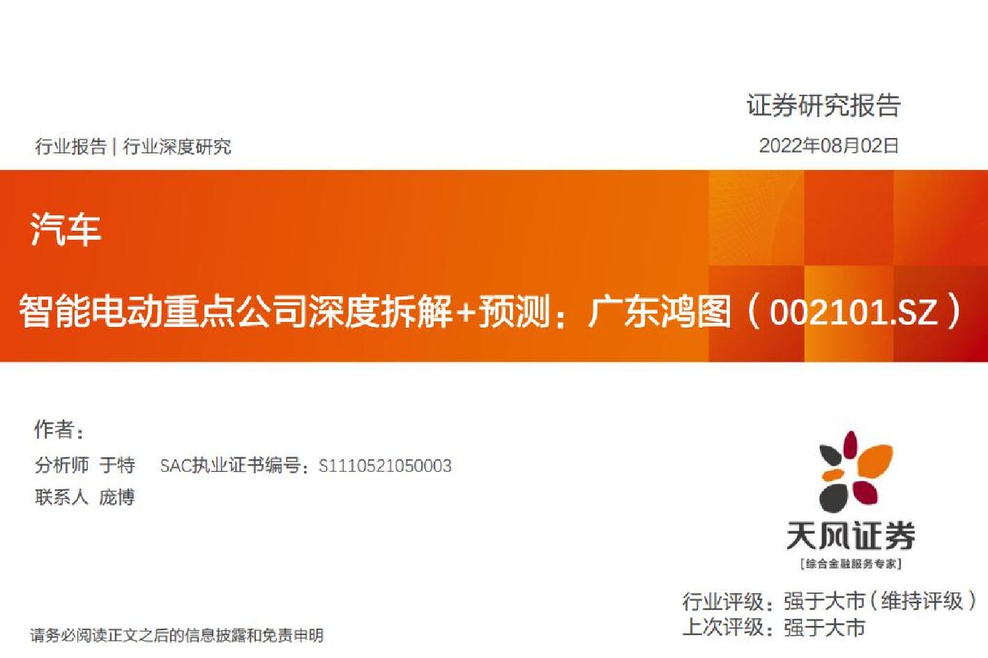 天风证券:汽车行业深度研究:智能电动重点公司深度拆解+预测:广东鸿图.pdf