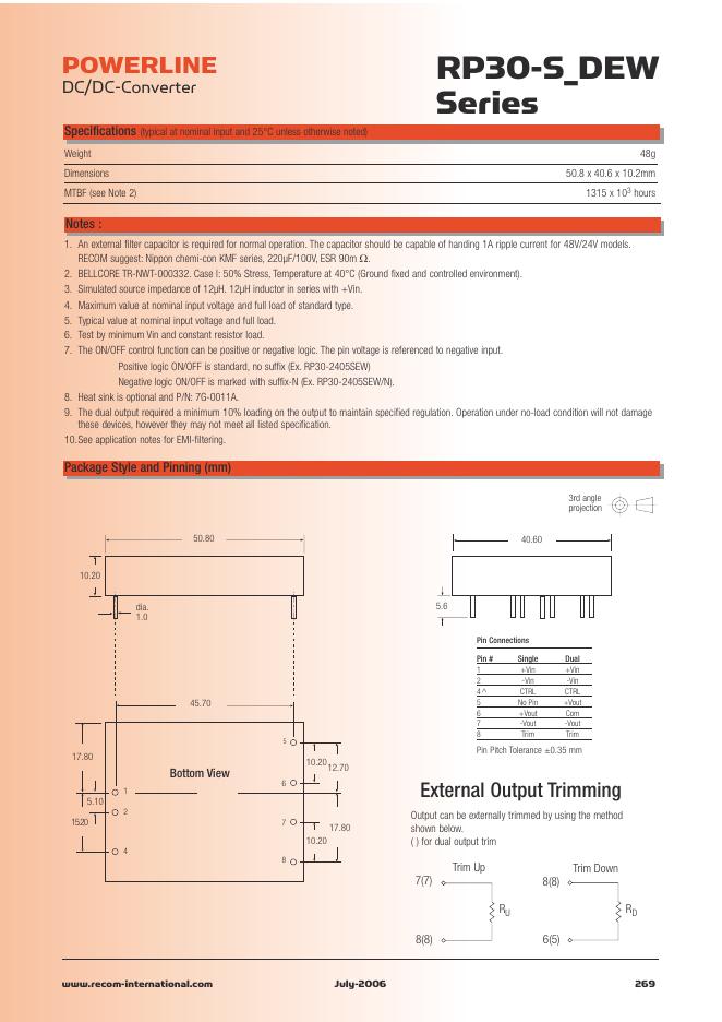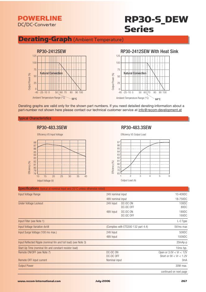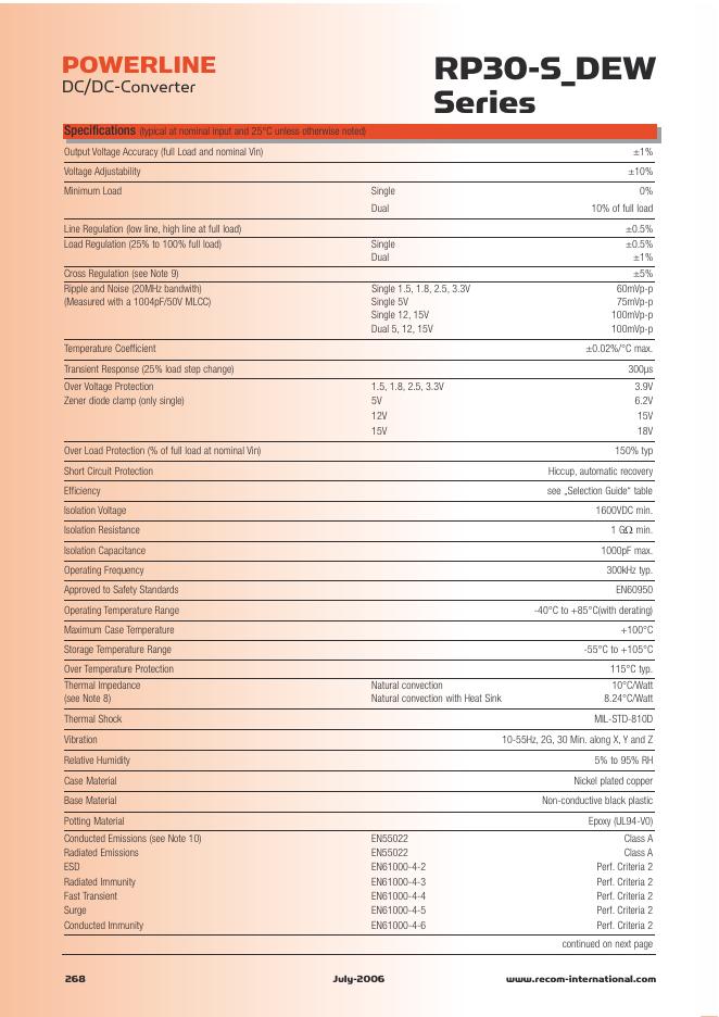 RECOM RP30- S_DEW Series30 Watt Single & Dual Output 数据手册.pdf