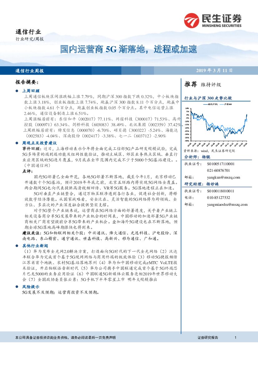 民生证券:通信行业周报:国内运营商5G渐落地,进程或加速.pdf