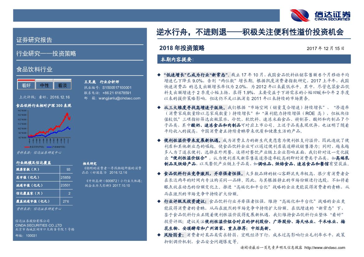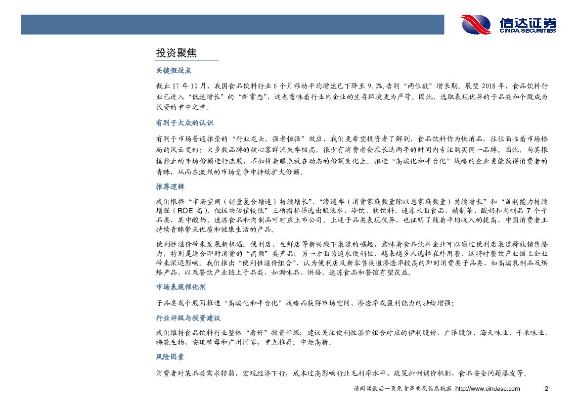信达证券:食品饮料行业2018年投资策略:逆水行舟,不进则退——积极把握消费者新需求.pdf