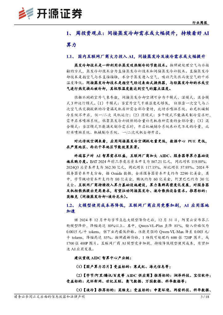 开源证券:通信行业周报:间接蒸发冷却需求或大幅提升,持续看好AI算力.pdf