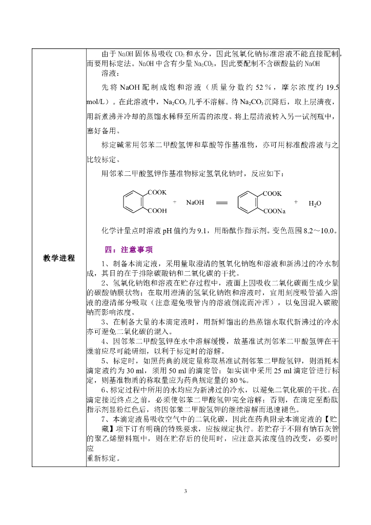 《药物检验技术》电子教案-氢氧化钠滴定液的配制与标定--教案.pdf