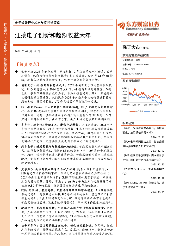 东方财富证券:电子设备行业2024年度投资策略:迎接电子创新和超额收益大年.pdf