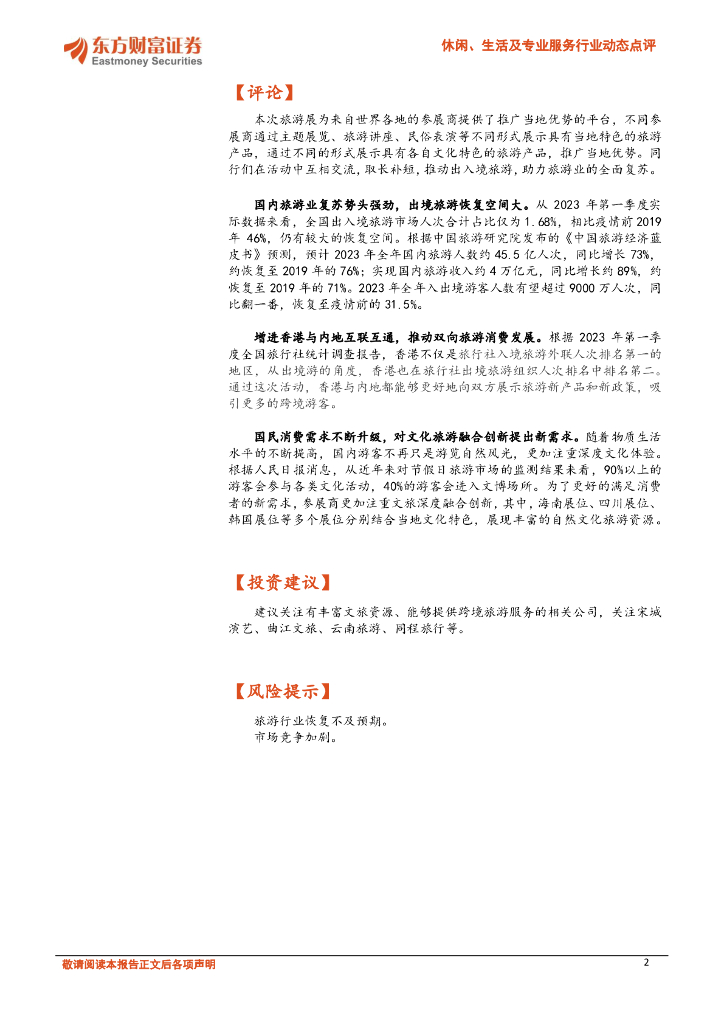 东方财富证券:休闲、生活及专业服务行业动态点评:香港举办国际旅游展,推动旅游市场全面复苏.pdf